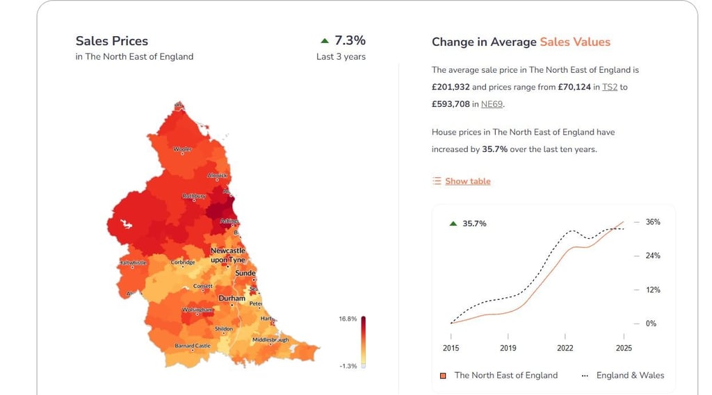 Compared with national averages, the North East continues to stand out for value. According to the latest regional data:
